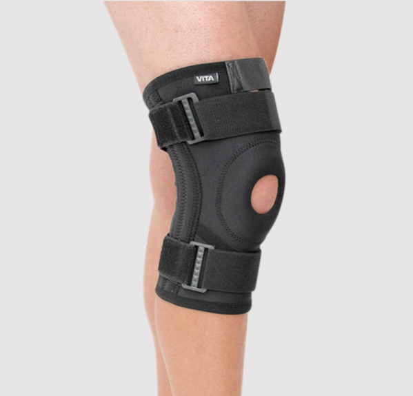 Επιγονατίδα VELCRO με Οπή και Μπανέλες. Κατασκευή από ελαφρύ «neoprene» υψηλής ποιότητας και αντοχής. Διαθέτει δύο αυτοκόλλητες δέστρες σταθεροποίησης. Τέσσερις εύκαμπτες μπανέλες spiral για την υποστήριξη των πλαγίων συνδέσμων της άθρωσης του γόνατος. Διαθέτει ανατομικό ένθετο μαξιλάρι σταθεροποίησης της επιγονατίδας. Εύκολη στην εφαρμογή, προσδίδει συμπίεση και σταθερότητα στο γόνατο. Αμφιδέξια. Χρώμα: Mαύρο