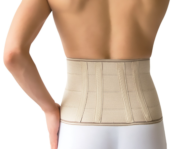 Ζώνη οσφύος τεσσάρων ελαστικών λωρίδων των 5cm. Σταθερή με ανατομική εφαρμογή στη μέση. Η επιπλέον ενίσχυση των ελαστικών λωρίδων επιτυγχάνει τη σωστή επαναφορά. Ενισχυμένη με τέσσερεις μπανέλες στην οσφυϊκή χώρα. Αυτοκόλλητο κλείσιμο εμπρός με velcro. Συνολικό ύψος 20cm. Πλένεται.