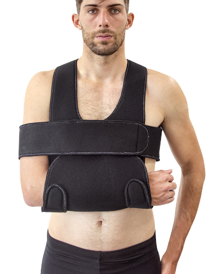 Κατασκευή από επενδεδυμένο αφρώδες υλικό «foam». Ρυθμιζόμενες τιράντες ανάρτησης χειρός και αυτοκόλλητη εγκάρσια θωρακική δέστρα πλήρους ακινητοποίησης ώμου – βραχίονα. Στήριξη του άνω άκρου σε θέση κάμψης αγκώνος 90°. Πρόσθιο κλείσιμο με Velcro. Αμφιδέξιος.