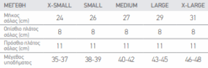 αντιολισθητική και πολυστρωματική σόλα, για την απορρόφηση των κραδασμών. Πελματιαία μαλακή επένδυση. Πρόσθιοι αυτοκόλλητοι ιμάντες, μεγάλου